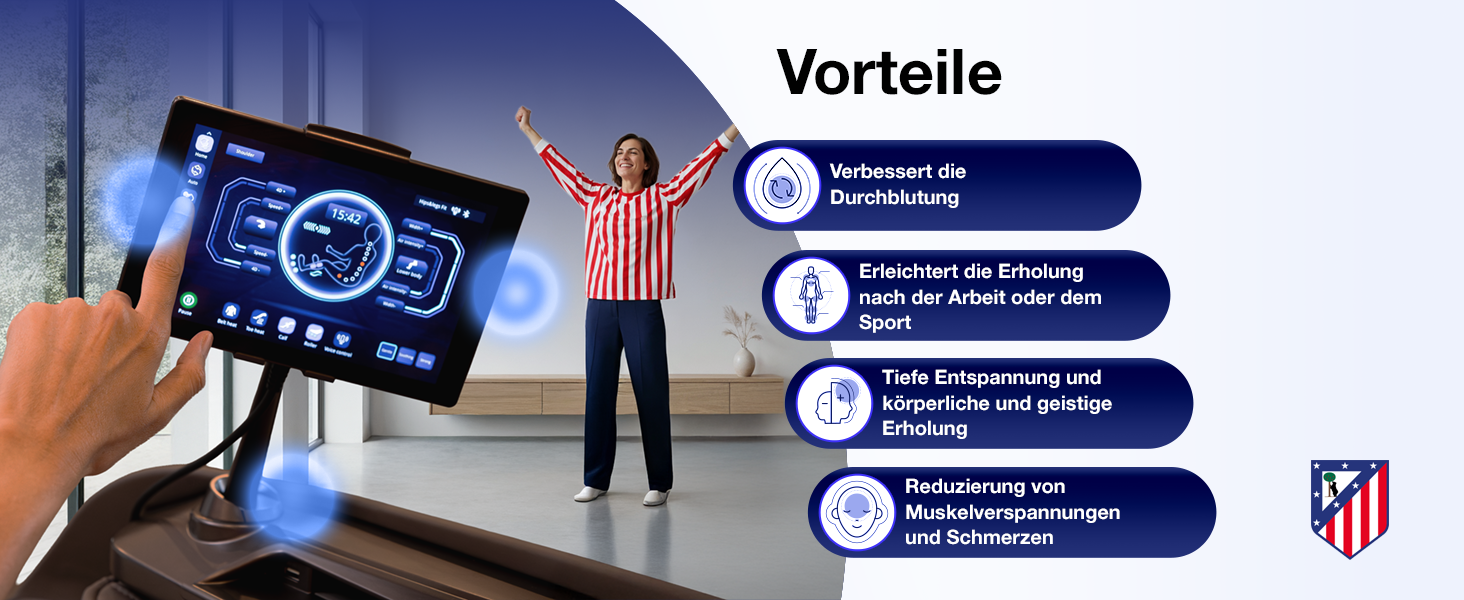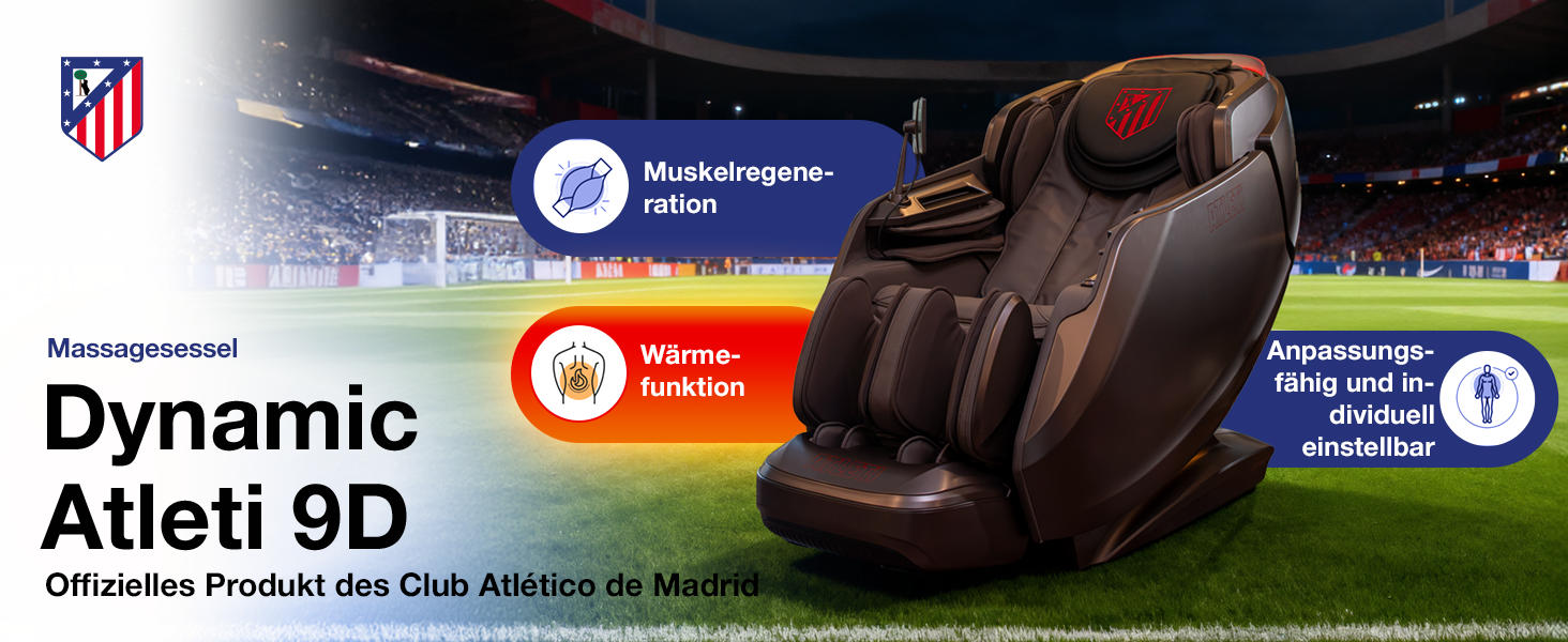 DYNAMIC ATLETI 9D: Intelligente Hochleistungsmassage mit dem offiziellen Logo von Atlético Madrid