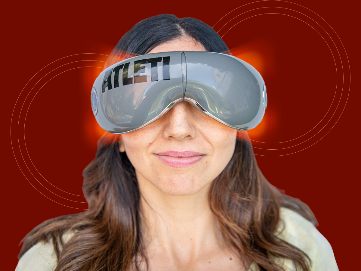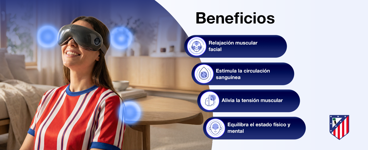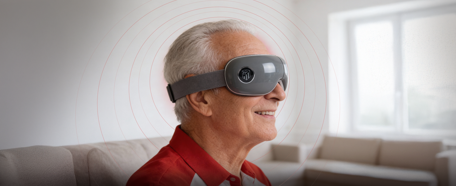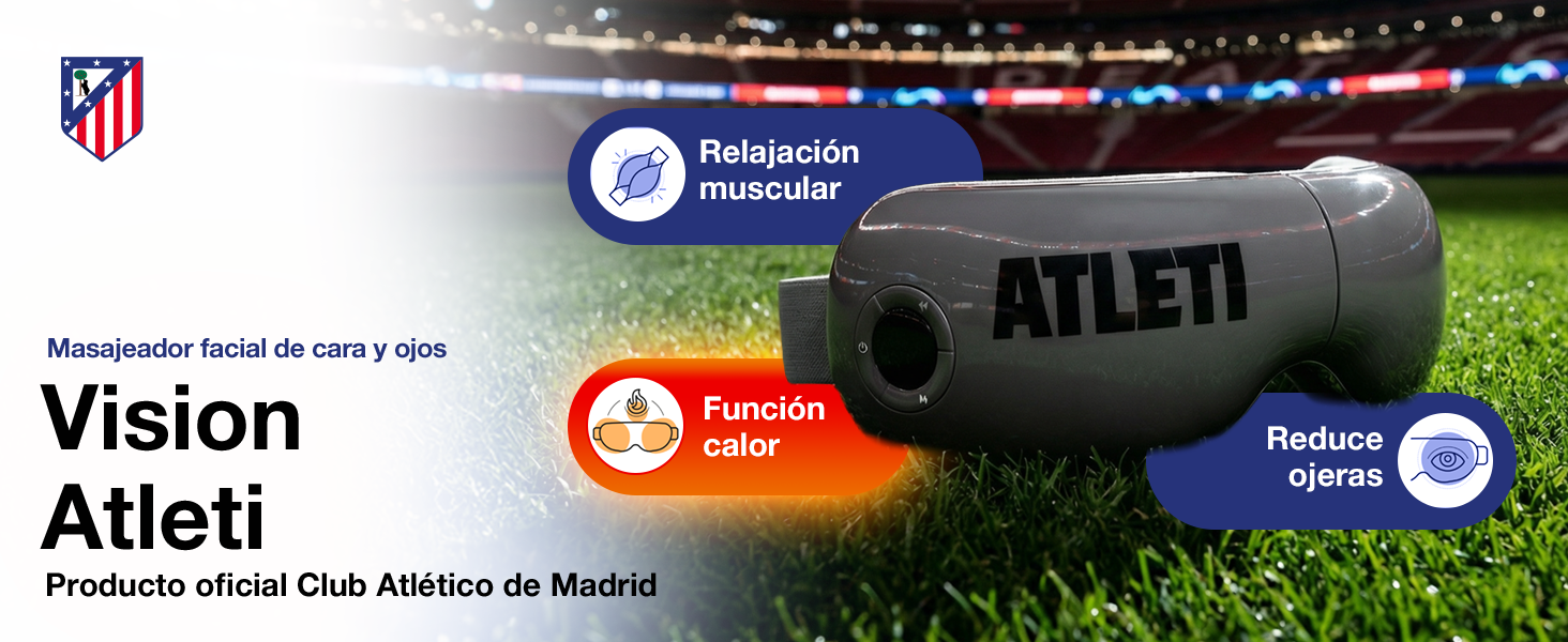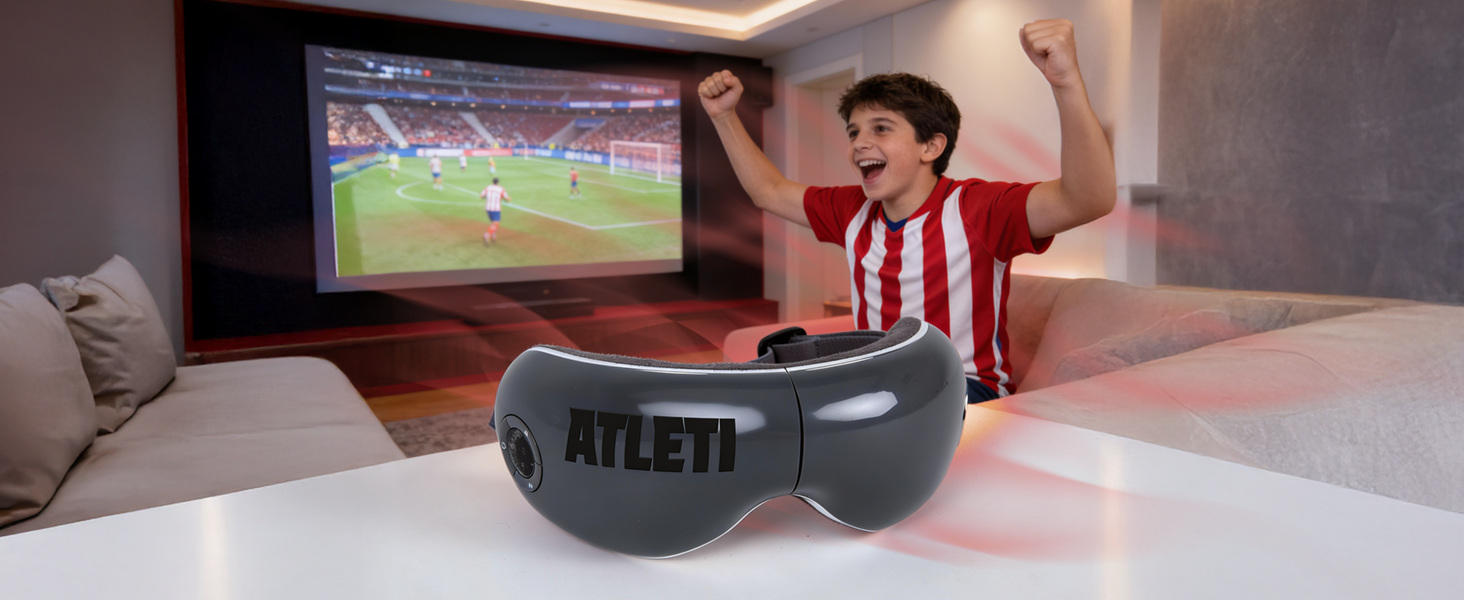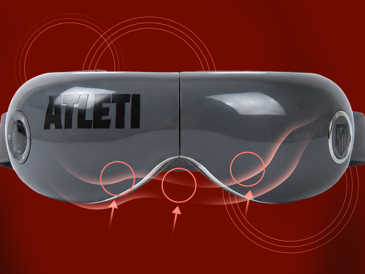Las gafas de masaje VISION ATLETI - Producto oficial ATLETICO de MADRID, proporcionan alivio instantáneo del estrés y la fatiga ocular, mejorando la circulación sanguínea y reduciendo ojeras y arrugas.