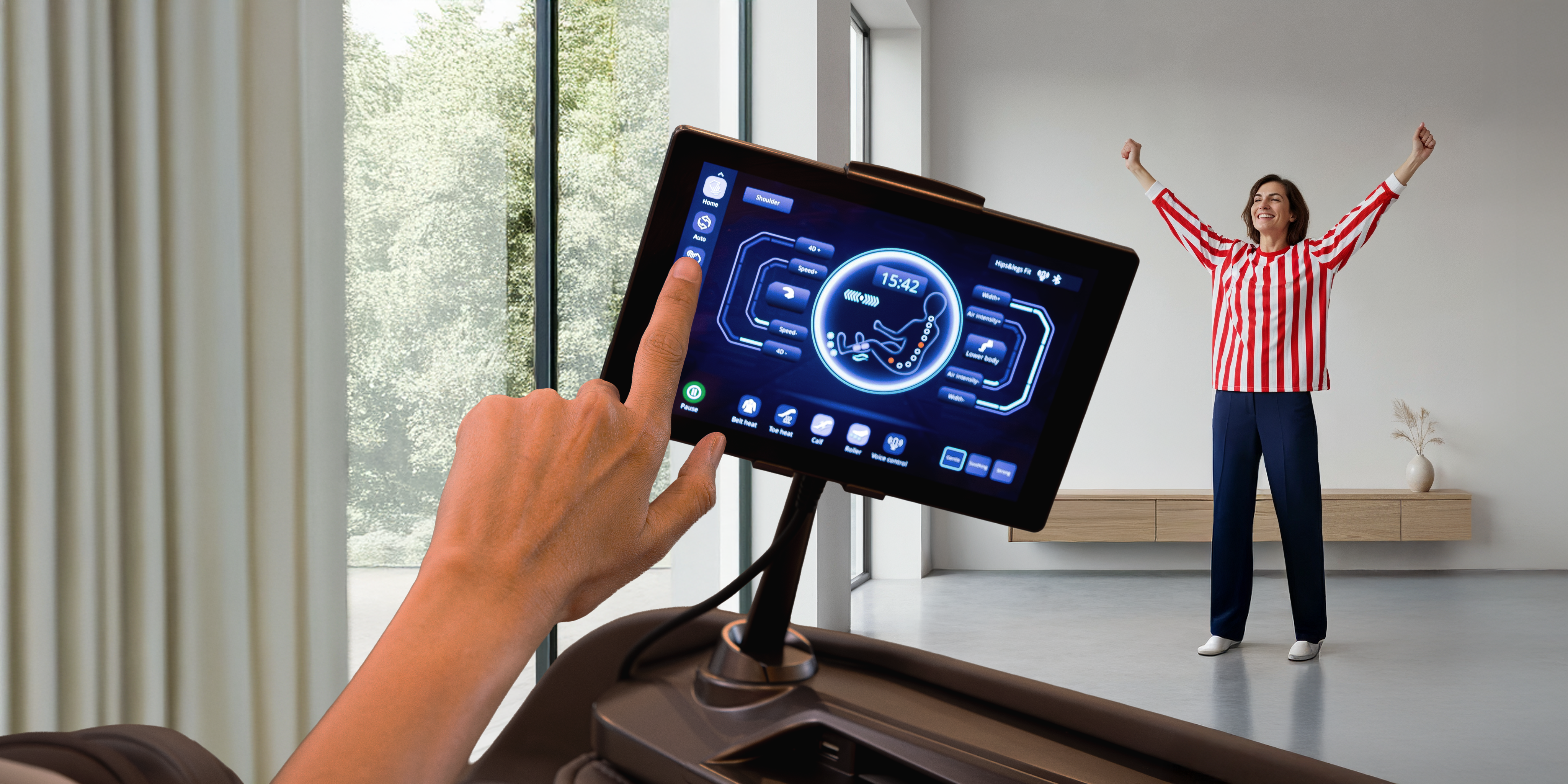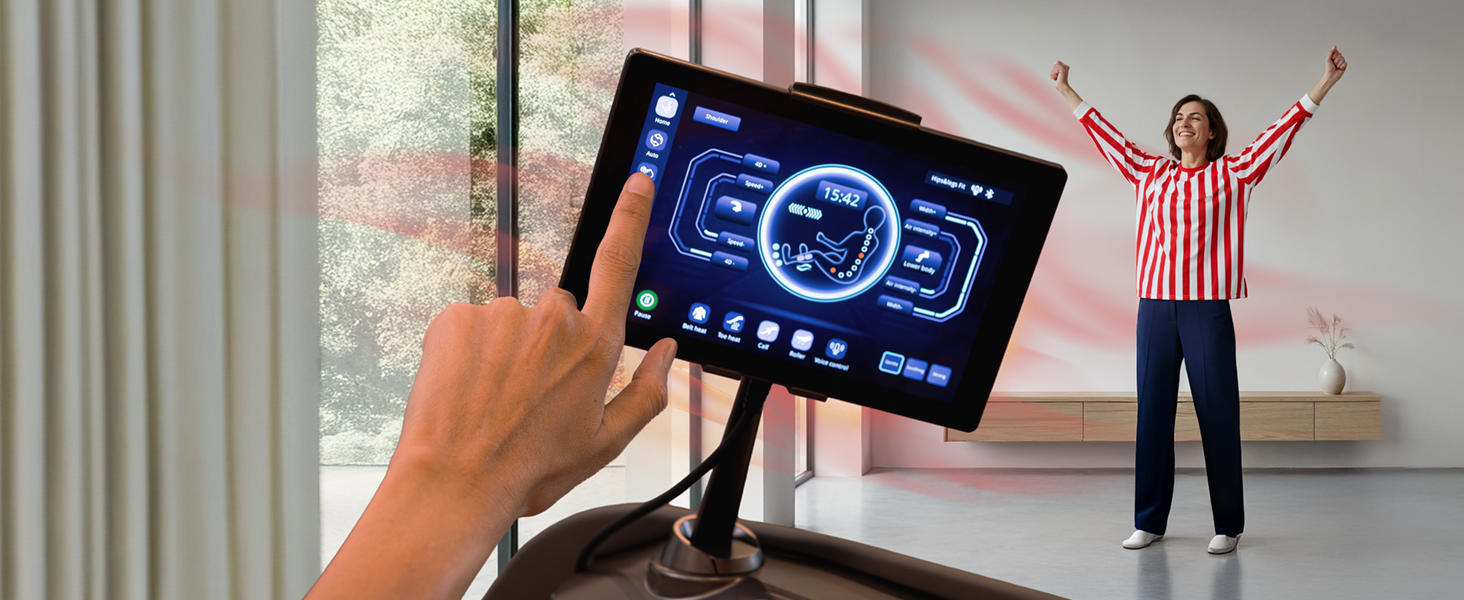 Incorpora múltiples técnicas de masaje profesionales y airbags en hombros, brazos, piernas y pies, con calor lumbar y podal. El escaneo corporal automático garantiza un masaje preciso, intenso y totalmente adaptado a cada usuario