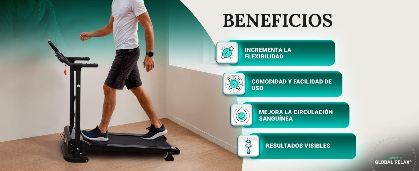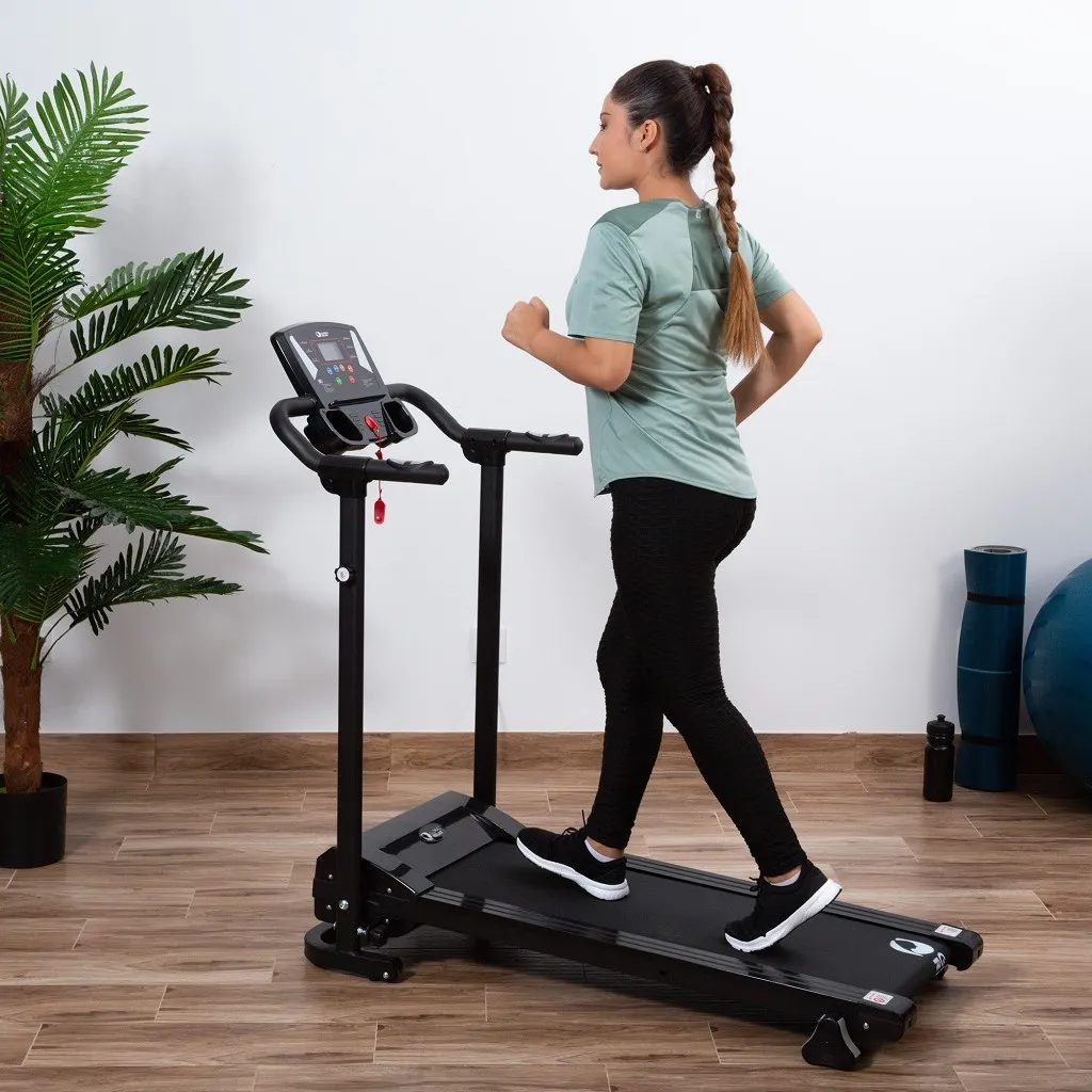 Su estructura resistente y superficie amortiguada reducen el impacto en las articulaciones, previniendo lesiones. Además, su sistema plegable facilita el almacenamiento en espacios reducidos, mientras su panel LCD intuitivo permite controlar velocidad, tiempo y calorías con total comodidad