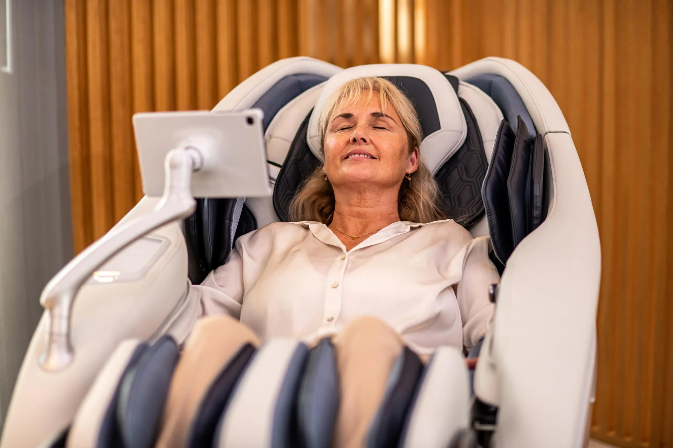 El sillón de masaje DA Vinci 7D combina la tecnología más avanzada basada en IA (inteligencia artificial) con diseño elegante, ofreciendo una personalización perfecta para cada sesión. Disfruta de la comodidad de un control táctil intuitivo, con masajes que integran ritmos binaurales, acupresión y termoterapia, promoviendo una relajación física y mental profundamente renovadora