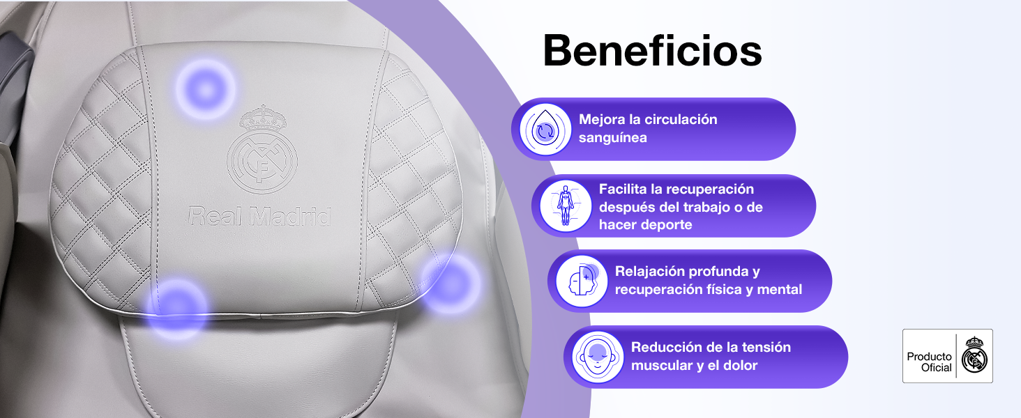 Combina lo último en tecnología de relajación con tu pasión Madridista en un solo sillón