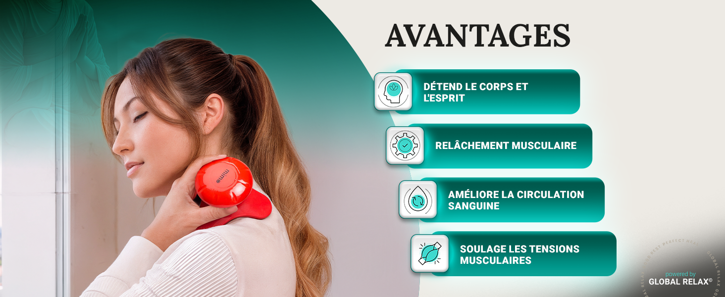 BONNO ne se contente pas de détendre les muscles, il stimule également les points de pression et améliore la circulation sanguine.