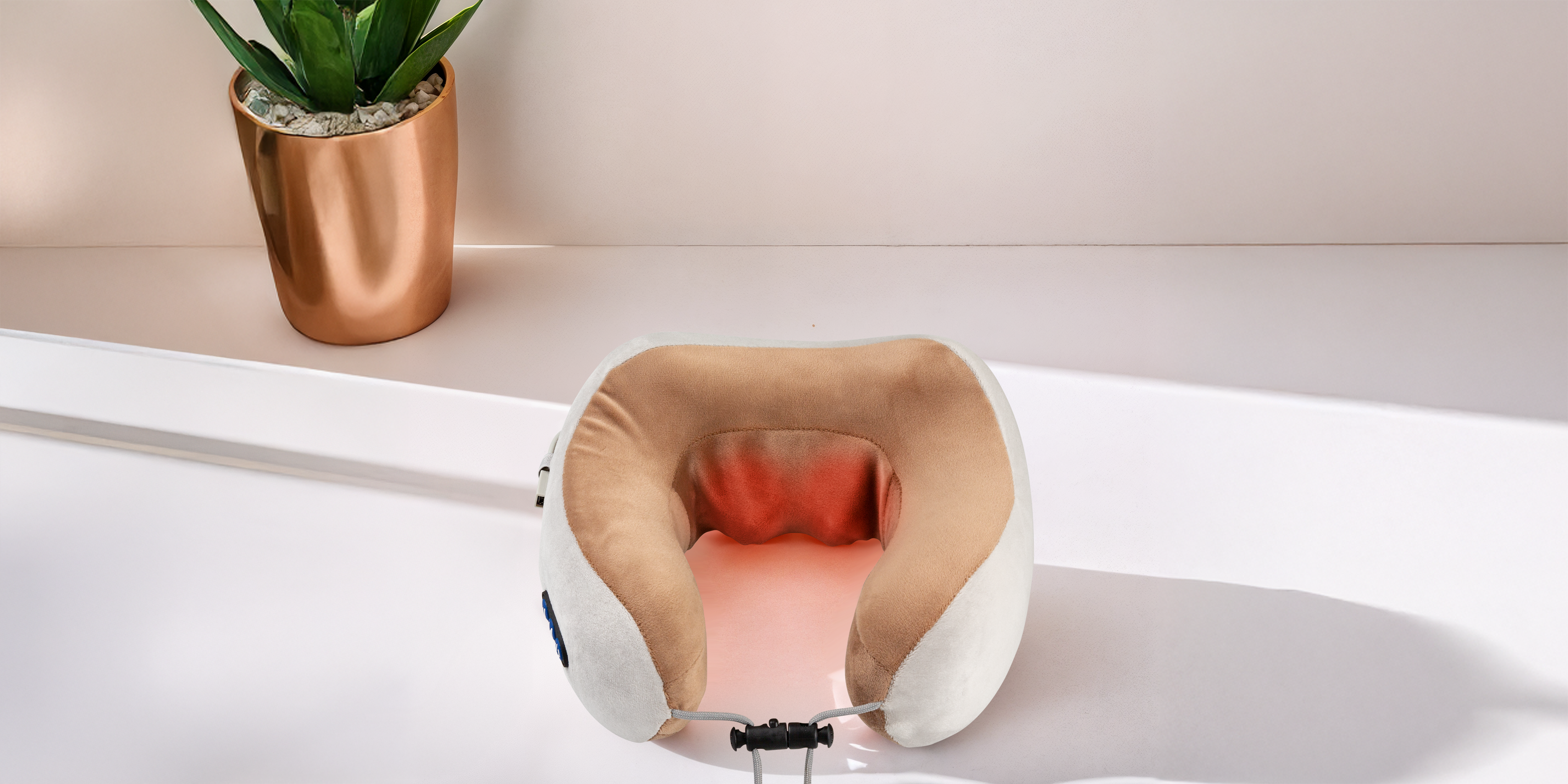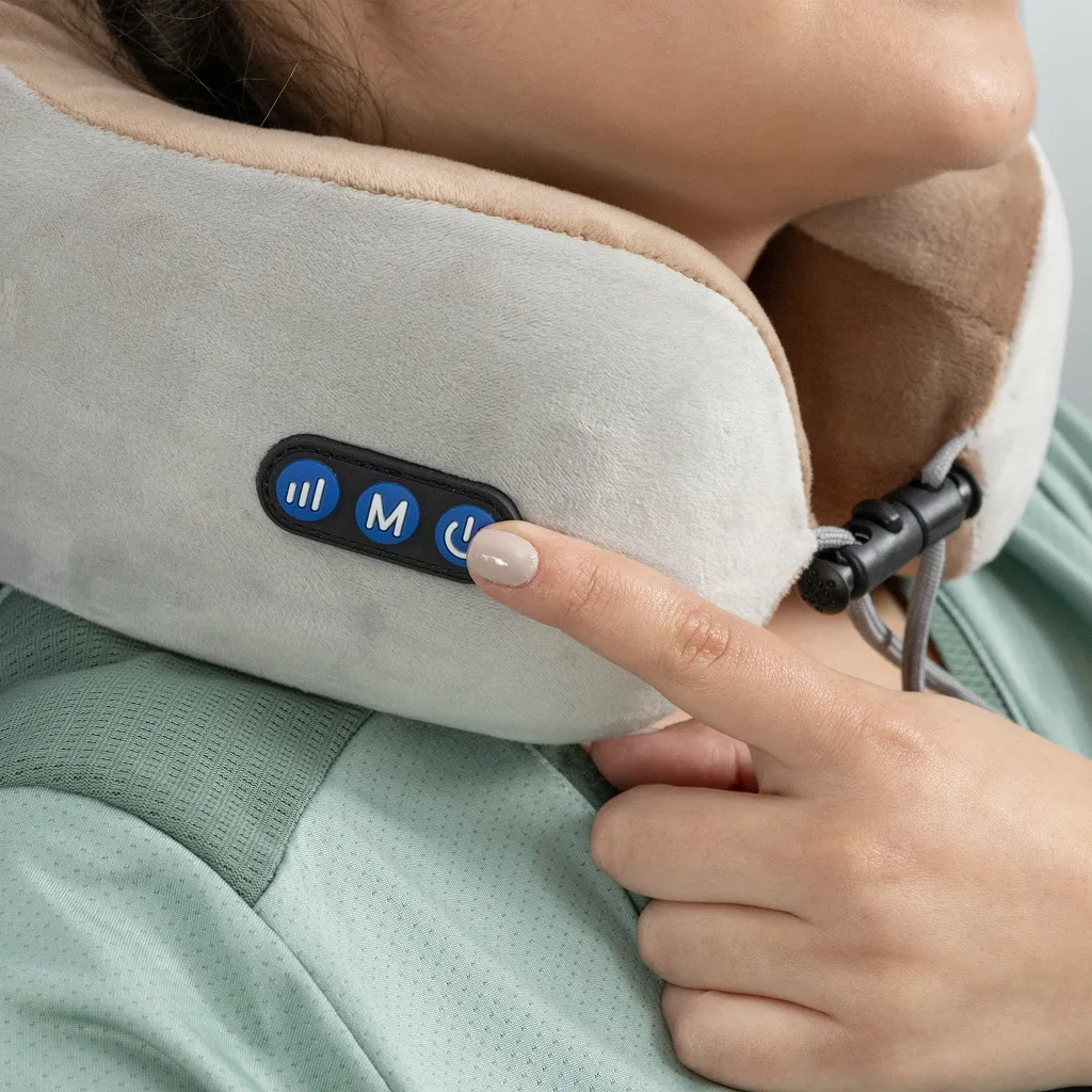 The TENZO MINI massage cushion delivers a dual-direction massage that relaxes muscles, relieves pain, and boosts circulation in the neck and head.