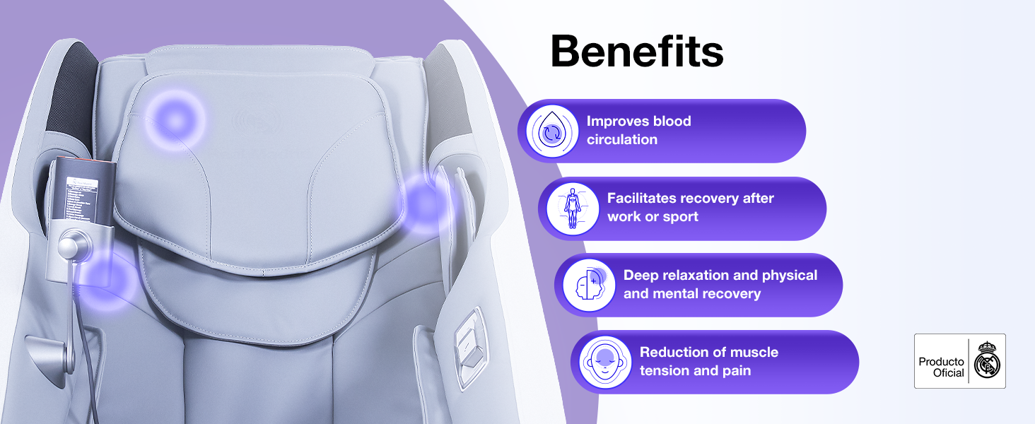 This massage chair - REAL MADRID official product, monitors your main health metrics (heart rate, fatigue index, ...) adapting the massage to your needs