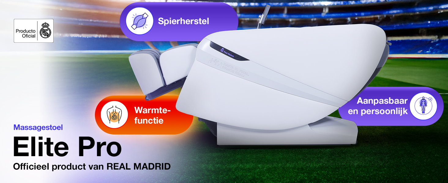 -40% € 2.999,99De Massagestoel ELITE Pro 4D – Officieel product van REAL MADRID combineert technologie en Madridista-passie met een exclusief 4D-massagesysteem en meeslepend 3D-geluid via Bluetooth.