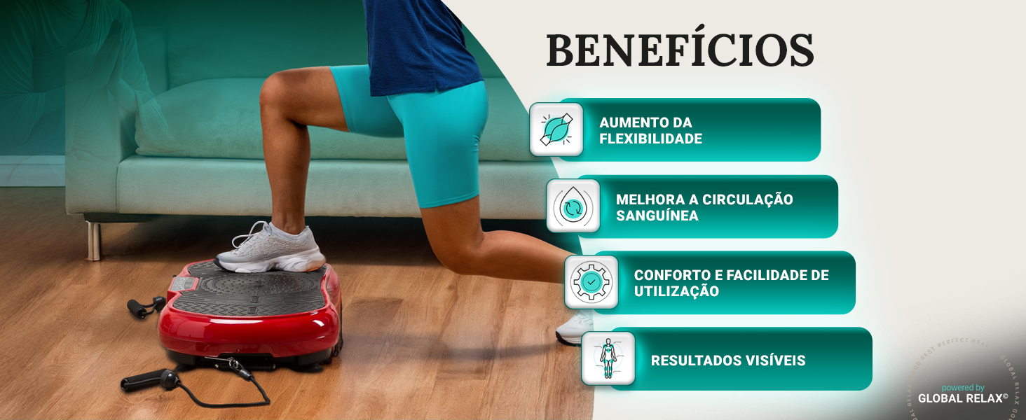 As vibrações aceleram o metabolismo, ajudando a eliminar gordura corporal e a definir os músculos de forma rápida e eficaz