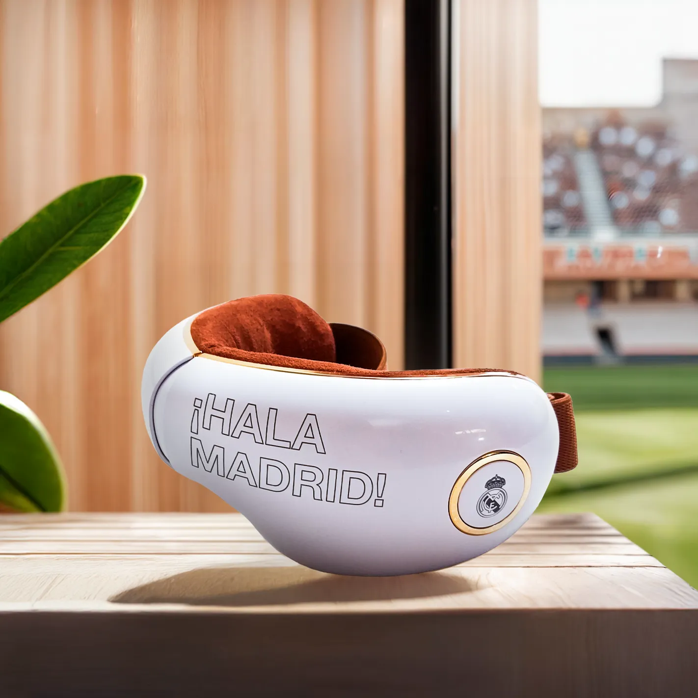 El masajeador de ojos INFINITY - Producto oficial del REAL MADRID, ofrece un diseño elegante y portátil con 4 tipos de masaje (presión térmico vibración y musical) y 5 modos predefinidos. Además, estas gafas de masaje incluyen altavoces integrados, para escuchar en sonido 3D digital los himnos oficiales del REAL MADRID, como el himno del Centenario y el himno de la Décima