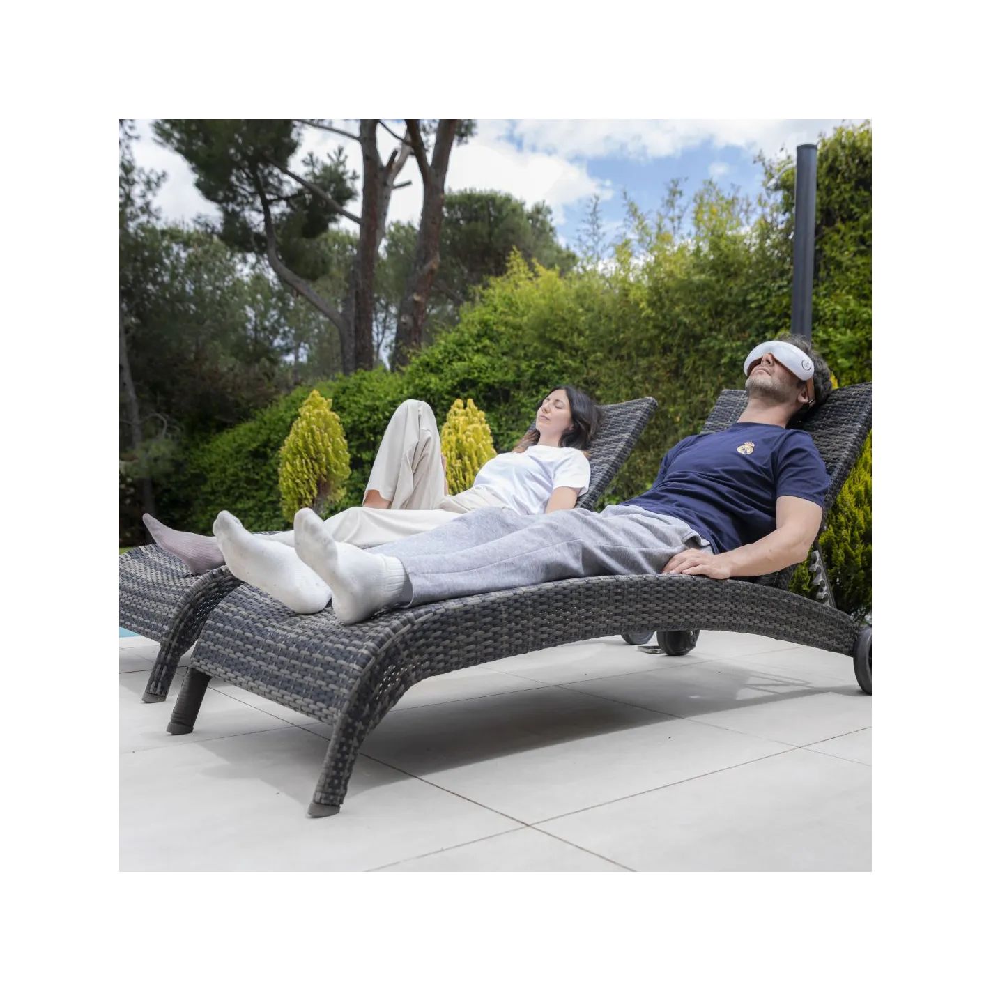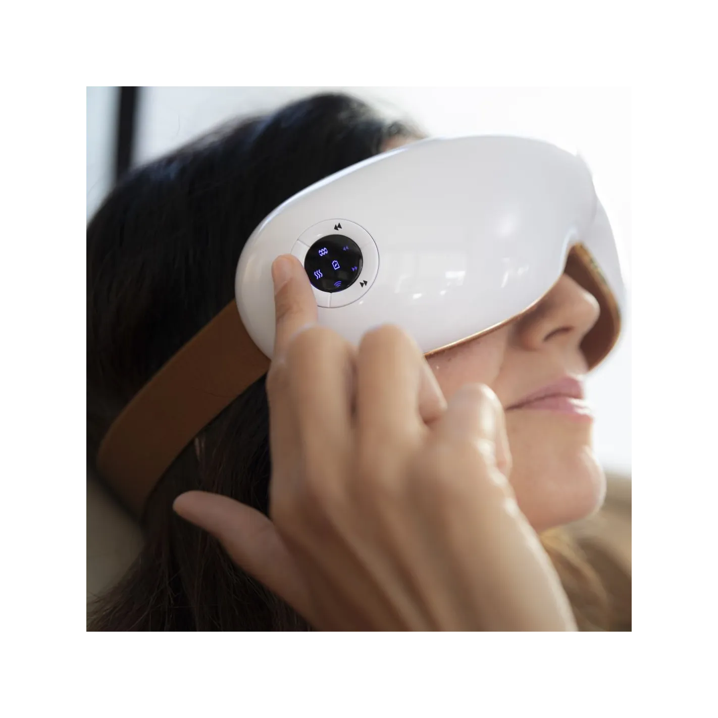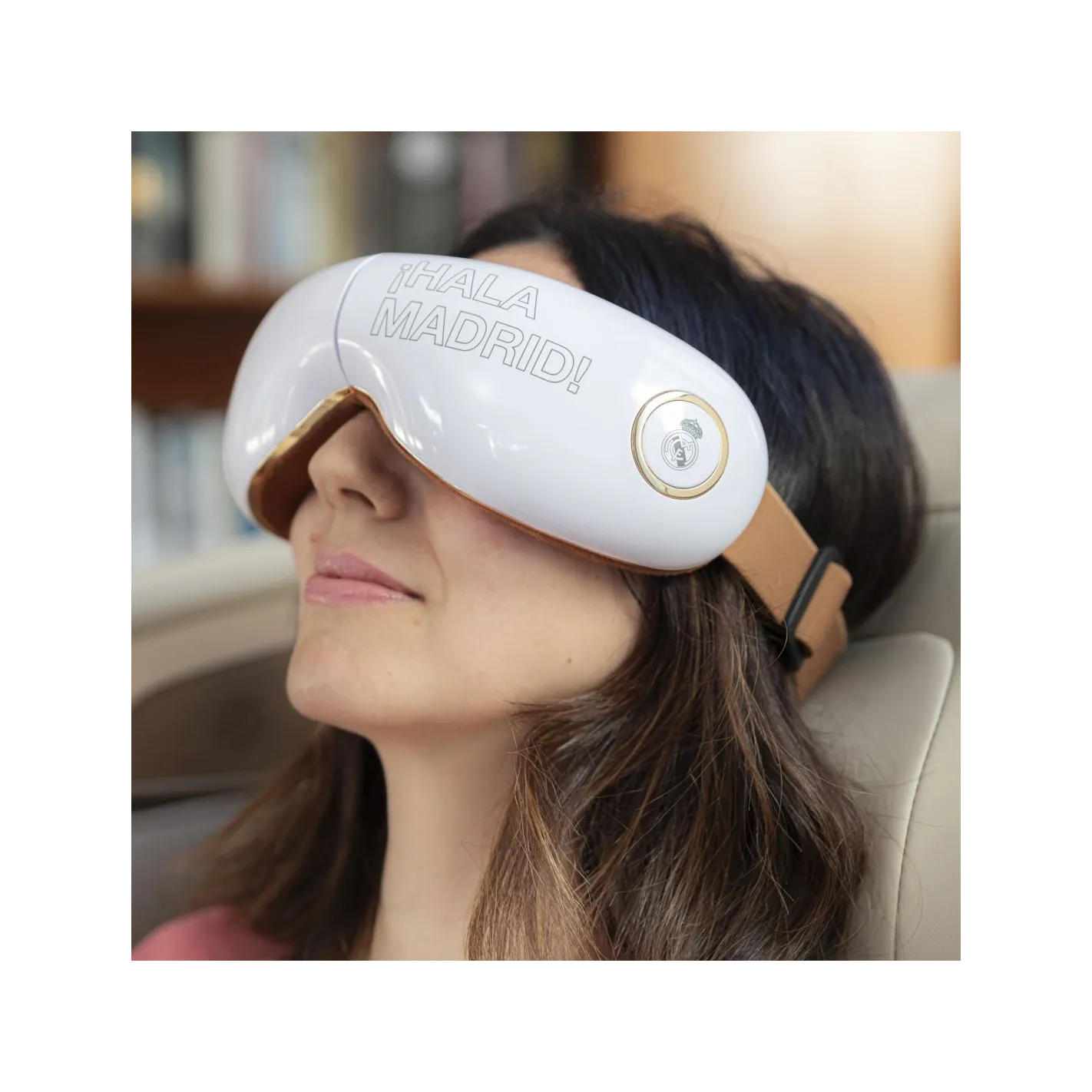 Las gafas de masaje INFINITY - Producto oficial REAL MADRID, proporcionan alivio instantáneo del estrés y la fatiga ocular, mejorando la circulación sanguínea y reduciendo ojeras y arrugas. Gracias a su combinación de masaje térmico, vibración y presoterapia, revitalizan la piel y son ideales para relajar la cara tras un día largo
